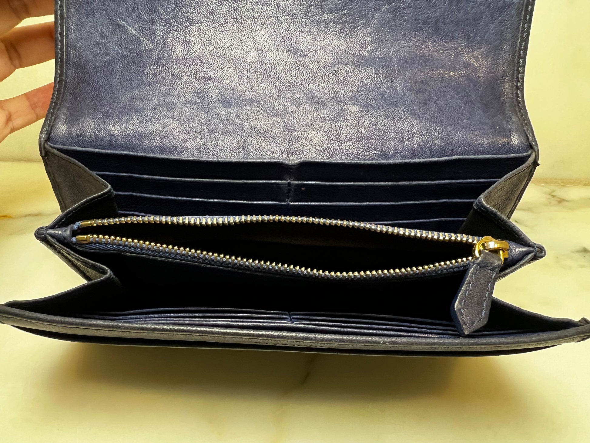 Material: Blue Leather, Gold-Tone Hardware